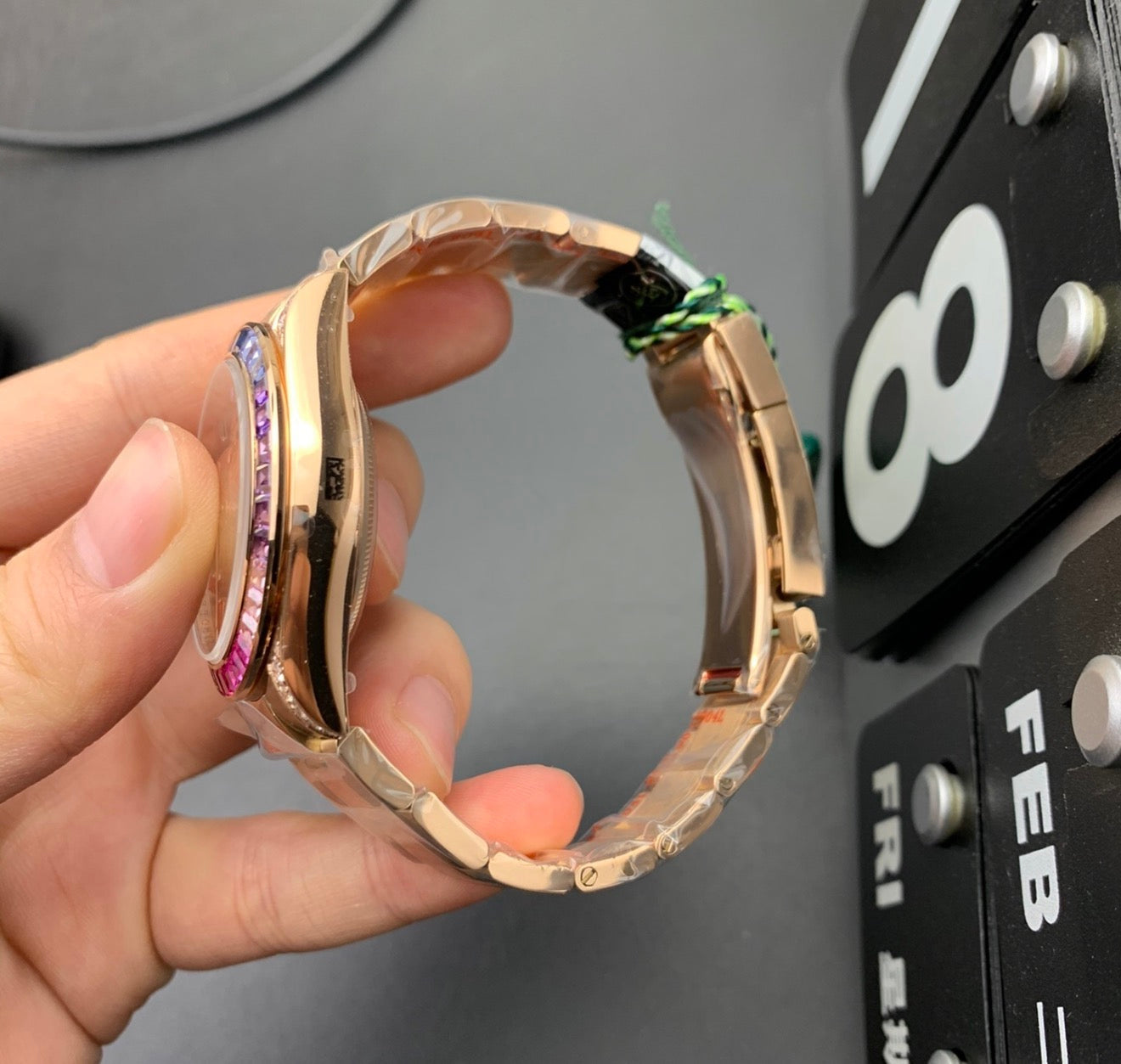 Rolex Cosmograph Daytona 116595RBOW “Rainbow” — a dazzling, high‑luxury chronograph adorned with multicolored sapphire bezel and premium materials for stand‑out style and performance. All watches are super clone and will come with the box, documents and carryon bag.